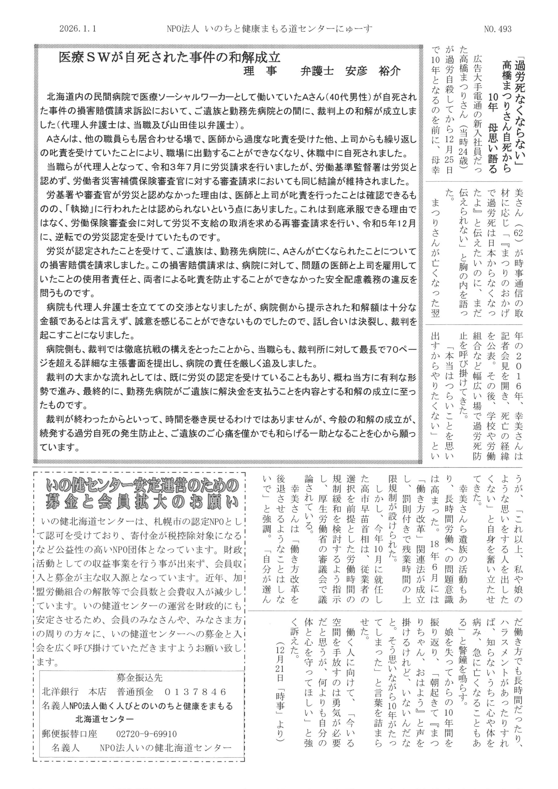 認定NPO法人 働く人びとのいのちと健康をまもる北海道センター